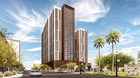 TEMPE, ARIZONA — A joint venture between Core Spaces and Wexford Developments has broken ground on Hub on Campus Tempe, a 30-story, 1,957-bed student housing tower located near the Arizona State University campus in downtown Tempe. The high-rise is scheduled for completion in summer 2028 and will feature a rooftop amenity deck and ground-floor retail space.