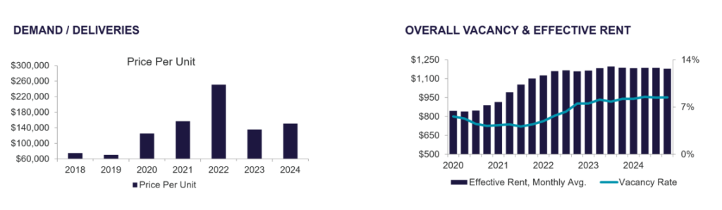 Q4 2024 presented significant challenges in the rental market. Property managers increased concessions and rent discounts to attract tenants. While seasonal softness is typical during holidays, elevated vacancy levels suggest broader market weakness. Management priorities have shifted to tenant retention and enhanced marketing strategies. Leasing activity and rent stability are expected to improve in early 2025.