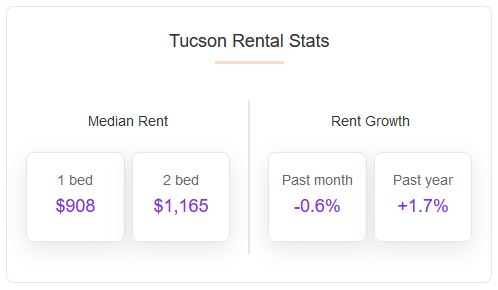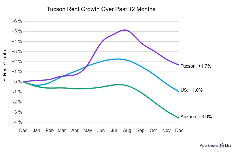 Tucson rents are down 0.6% month-over-month and up 1.7% year-over-year
